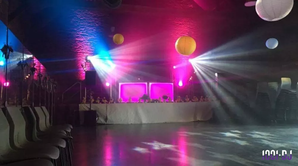 - Un éclairage d'ambiance de la salle de réception par projecteurs à LED, scanners, lasers…