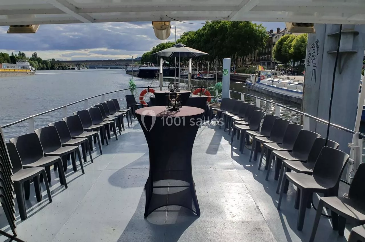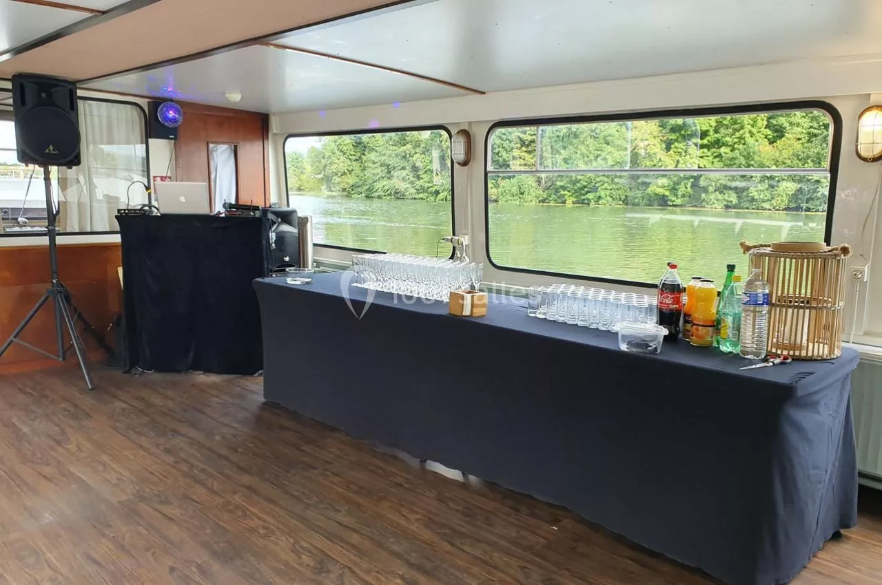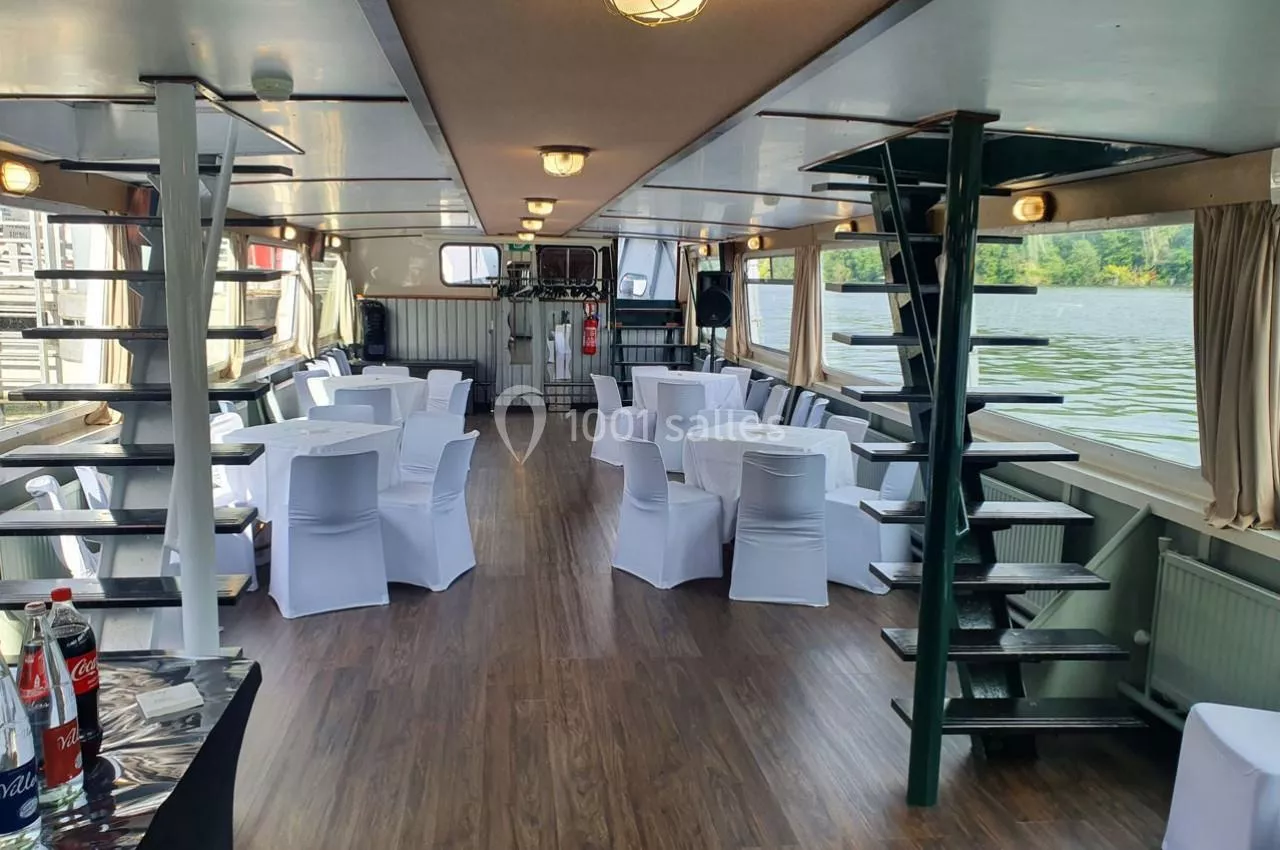 Salle de réception flottante, sur un bateau non naviguant, au cœur de Paris.