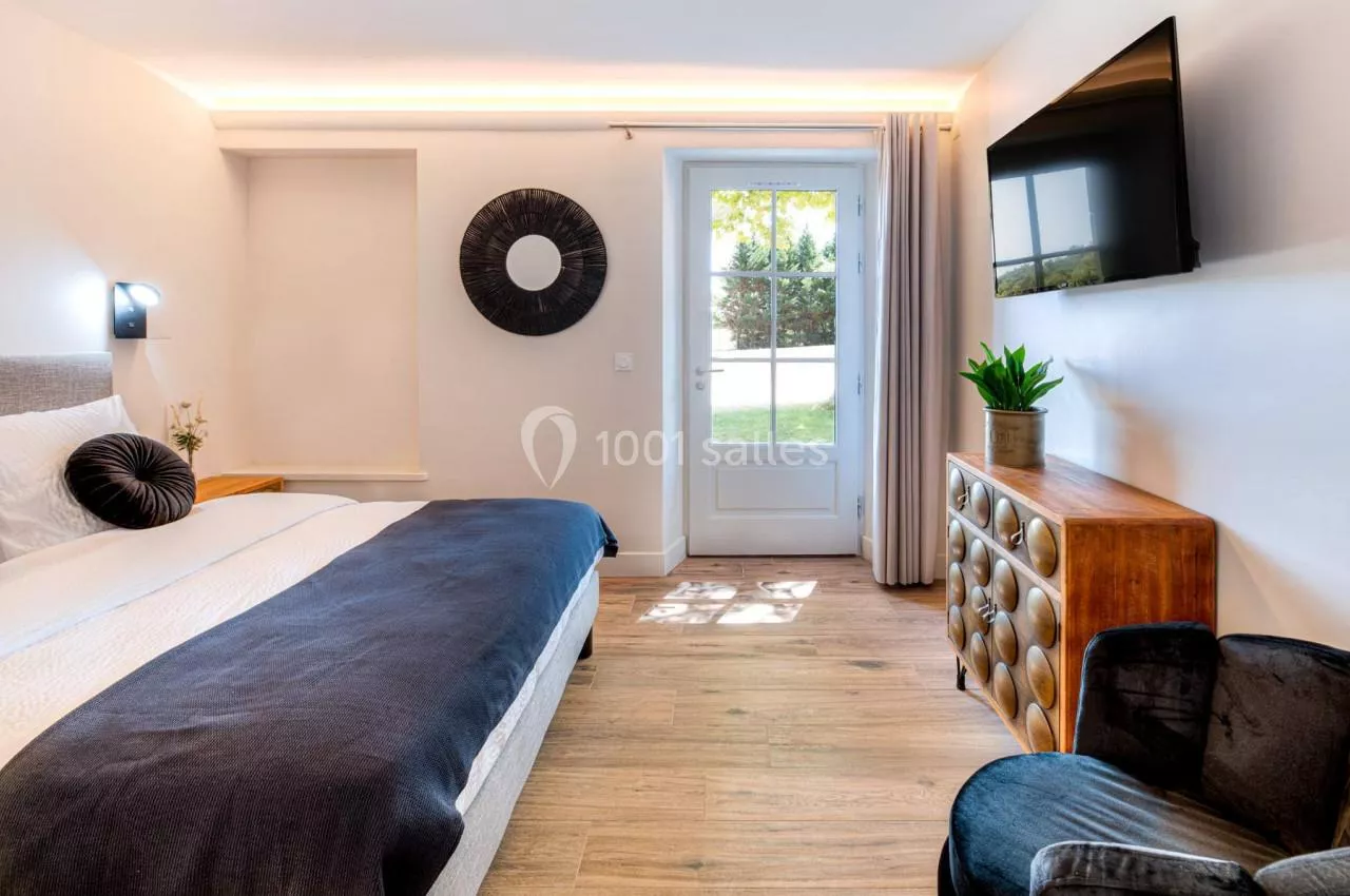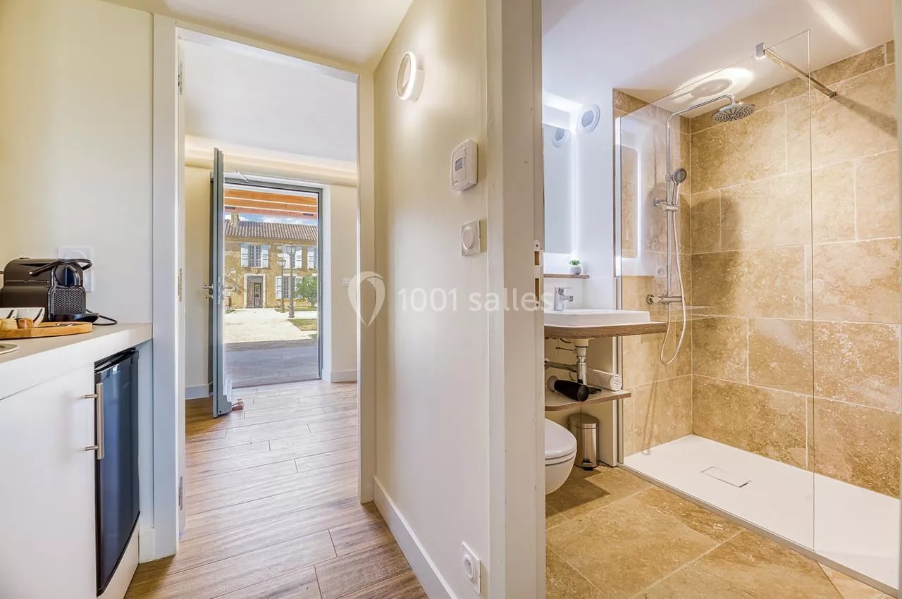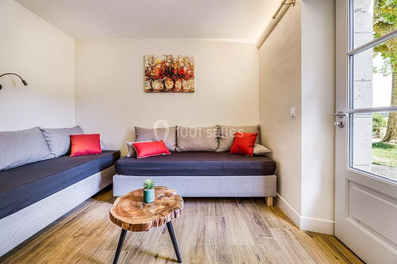 rendues accessibles. Une des suites du domaine est labellisée PMR et permet de loger jusqu’à 3 personnes. Un ascenseur permet quant à lui l’accès à la salle de réception principale.