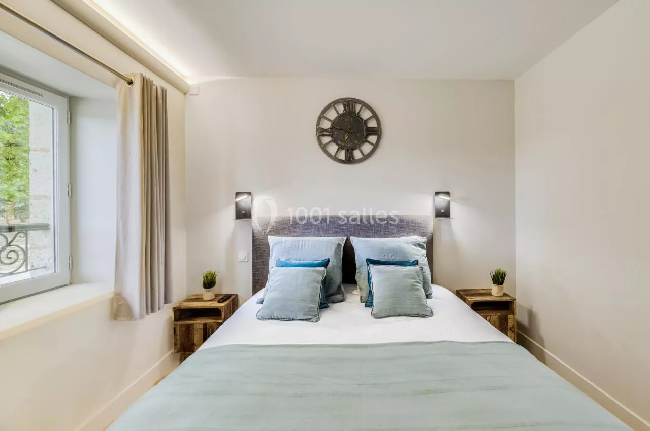 Oui, vous pouvez séjourner au Domaine de Boulouch qui dispose de 11 suites pour 4 personnes et 2 chambres pour 2 personnes. Plusieurs formules de restauration sont disponibles.