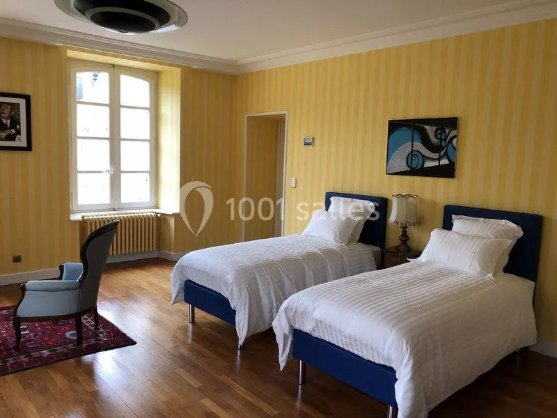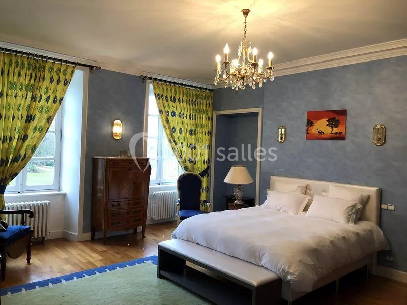 Au sein du château, dans le cadre de la privatisation, nous mettons à votre disposition 8 chambres avec petit déjeuner. Tous les hébergements disposent d'une literie en 160 cm ou 180 cm, d'une TV grand écran. 3 chambres supplémentaires sont égaleme...nt proposées. Les clients peuvent accéder librement aux zones communes du château, à la piscine intérieure chauffée et à l'ensemble du parc. Nos 2 gîtes accueillent respectivement 6 et 8 personnes. La capacité d'accueil maximale en hébergements est de 40 personnes.