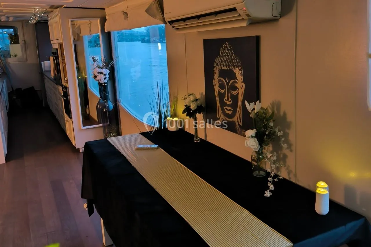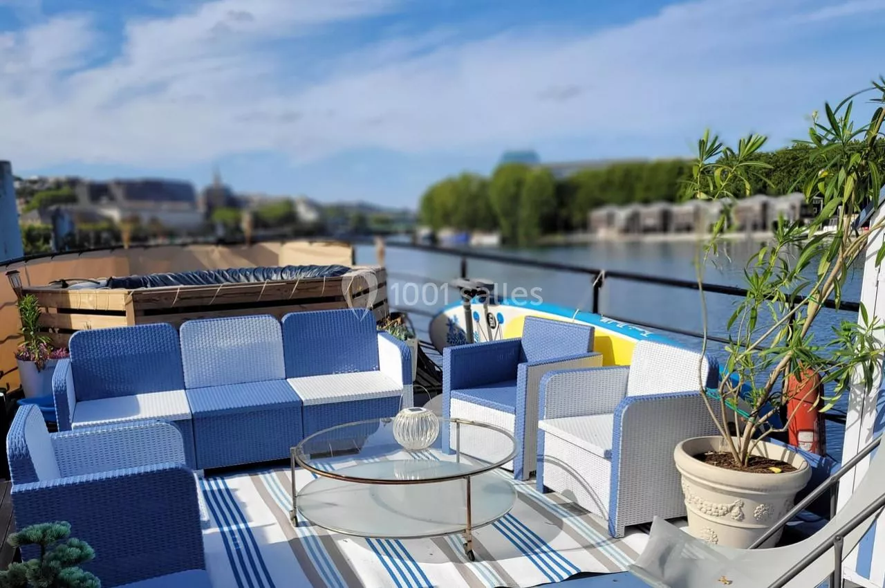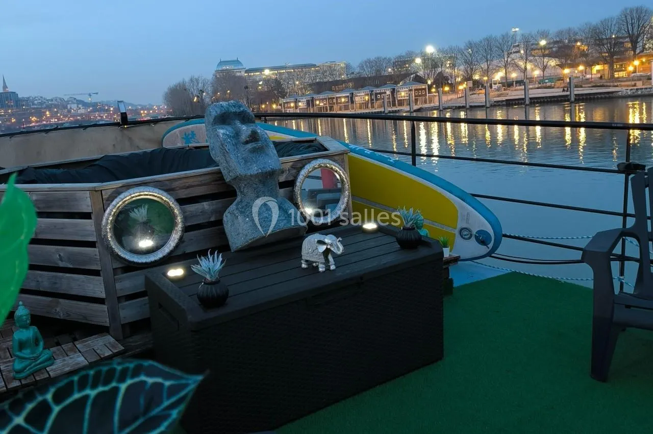 En plus de son emplacement central à Boulogne-Billancourt, La Péniche So Chic offre une ambiance unique en ville, avec une vue sur la Seine et un espace modulable selon vos besoins.