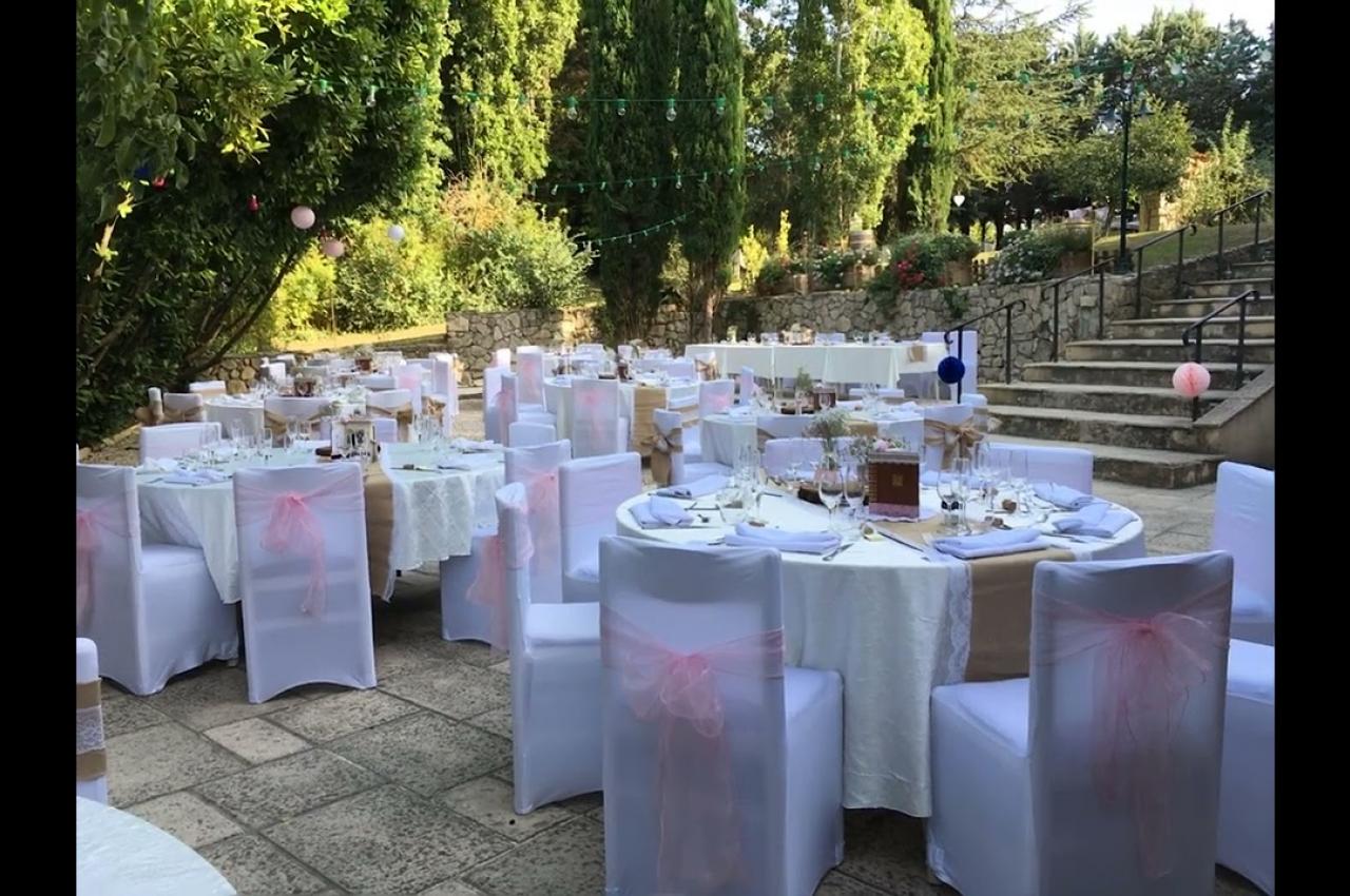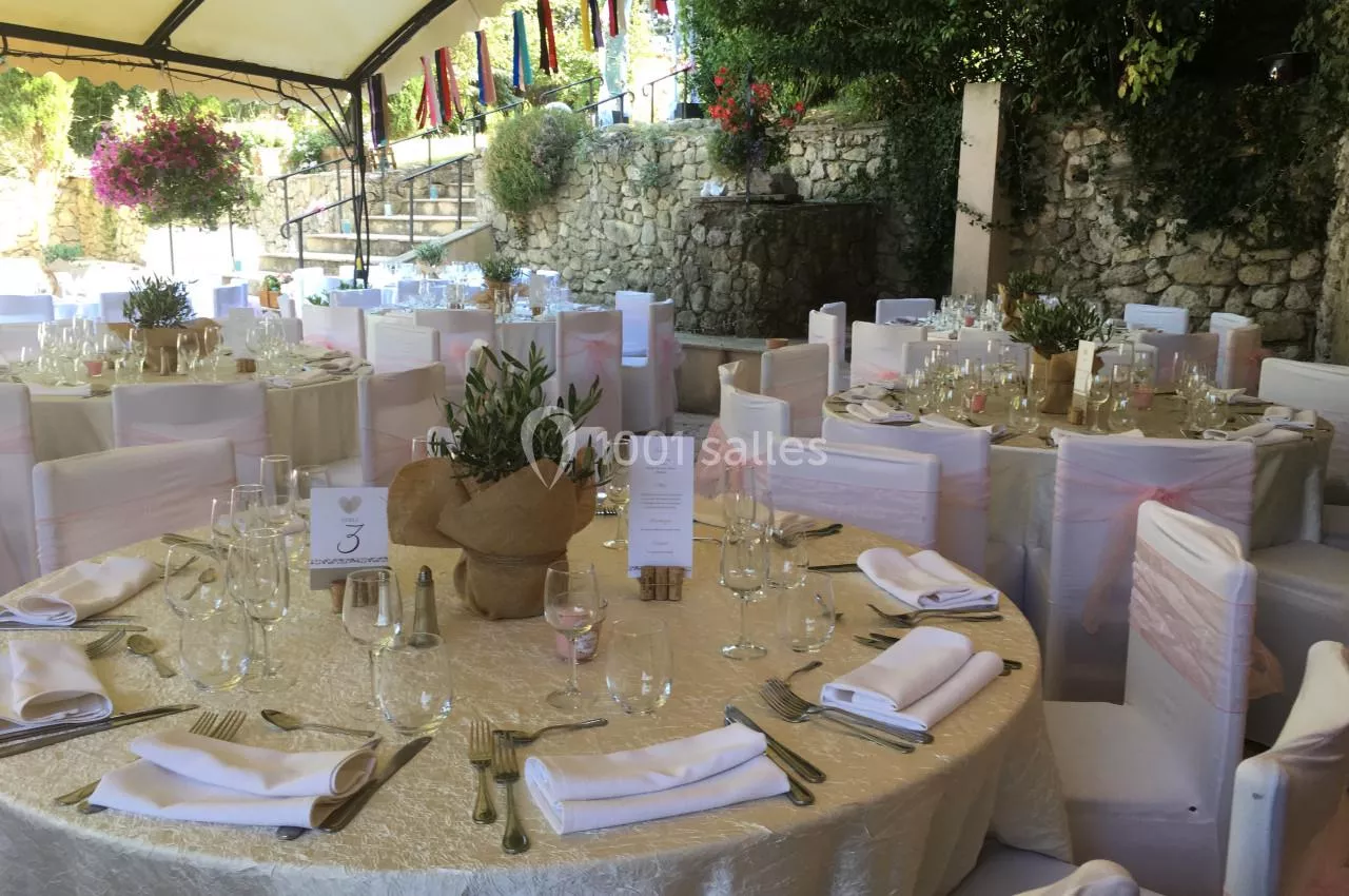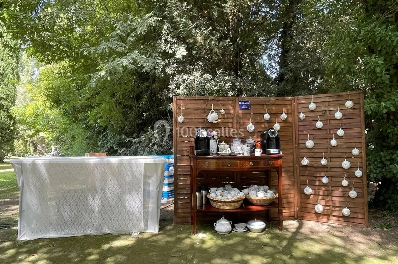 La terrasse, couverte et pleine de charme, sera le lieu idéal pour votre vin d'honneur, et vous pourrez virevolter à votre aise sur la piste de danse, jusqu'aux premières lueurs de l'aube et les jardins constituent un site apprécié pour les cérémonies laïques.
