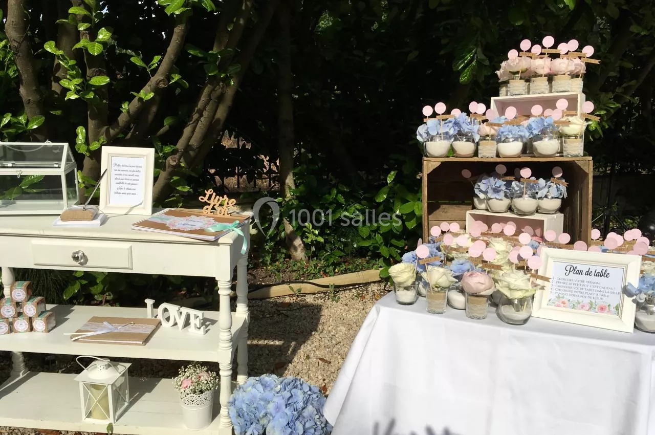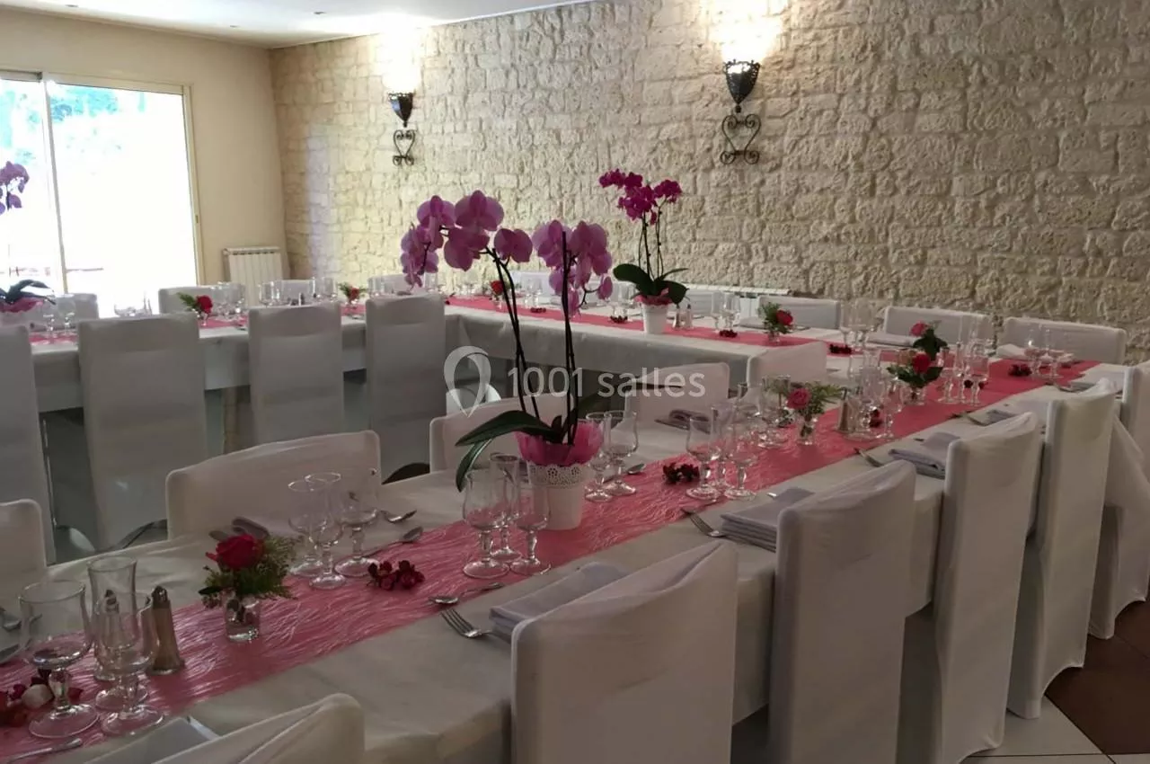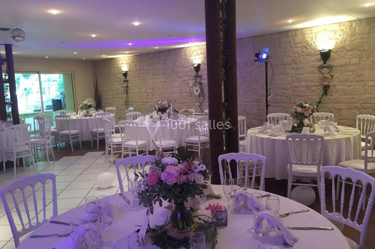 Vous aurez à votre disposition pour votre repas de mariage une jolie salle de réception, ajourée, qui pourra accueillir 150 convives. Il vous sera possible, si vous le souhaitez, d'organiser votre cérémonie ou encore votre banquet dans les magnifiques jardins du domaine.