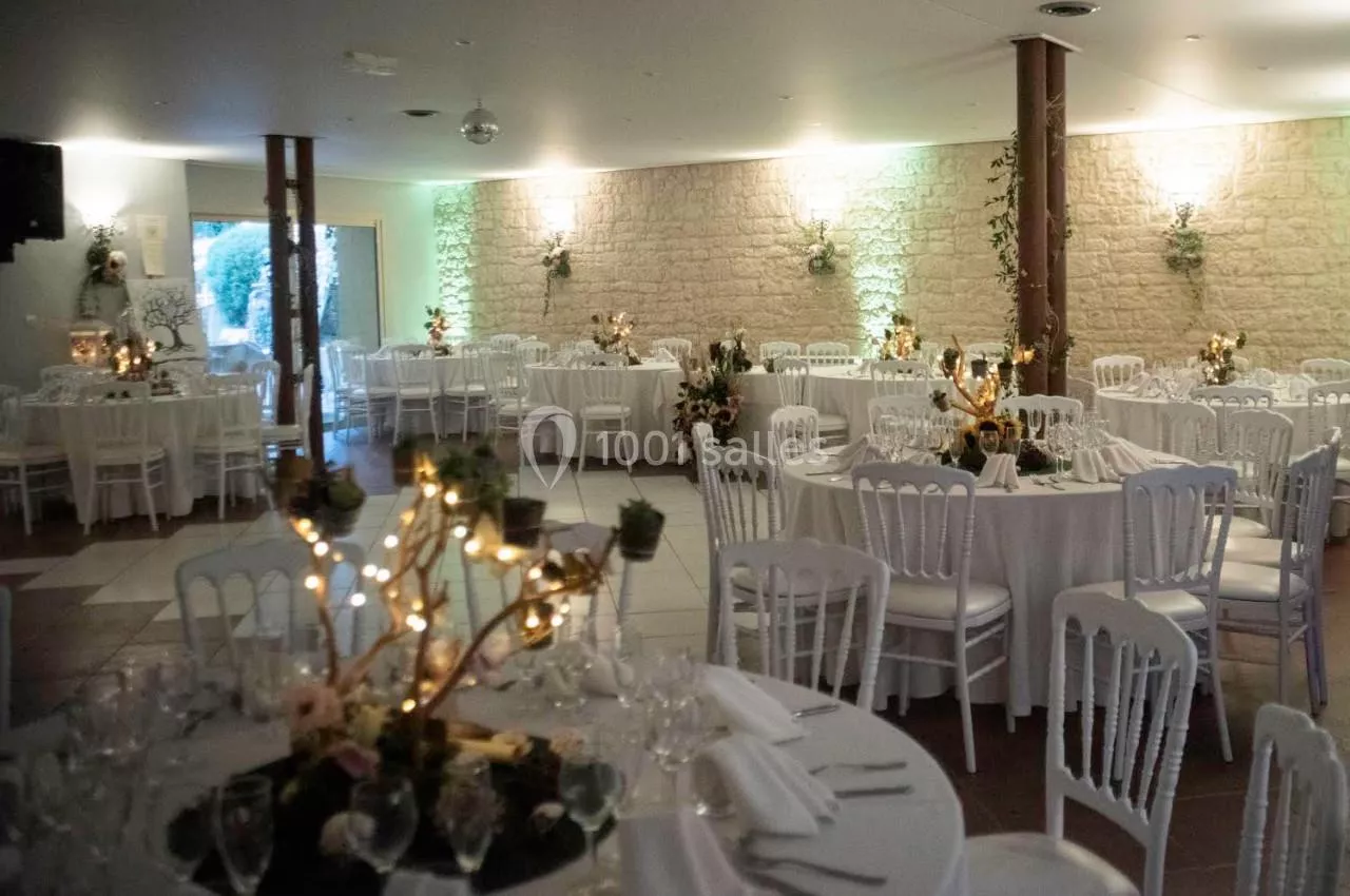 La salle de réception du Domaine du Vert Moulin peut accueillir entre 120 et 130 personnes pour un dîner assis, tout en conservant une piste de danse.