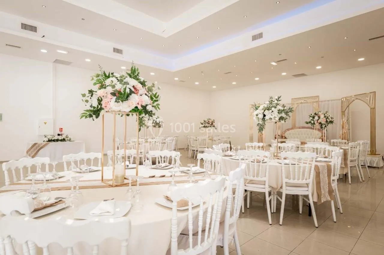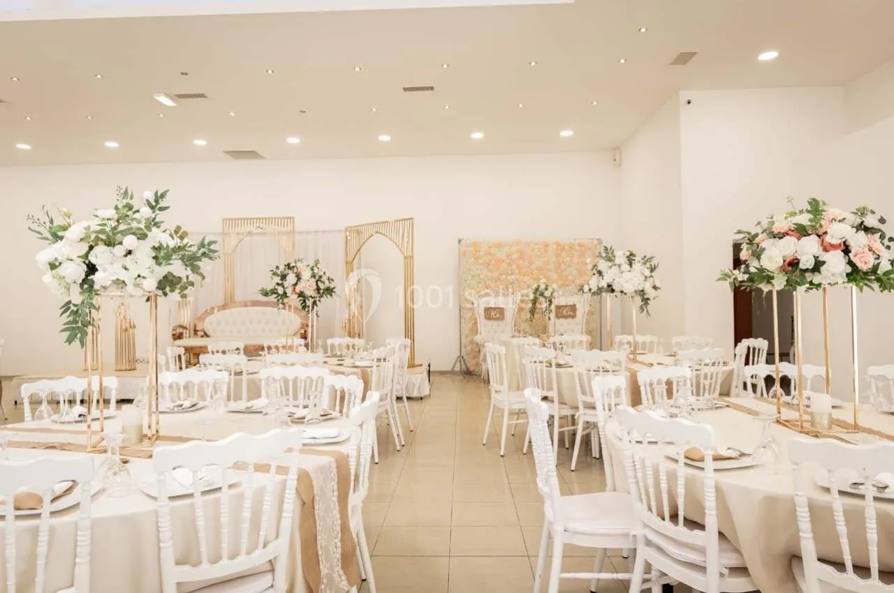 Un immense merci à toute l'équipe pour son professionnalisme exceptionnel et son engagement remarquable. La salle louée était à la fois élégante et bien agencée, créant une atmosphère chaleureuse qui a séduit tous nos invités. Le traiteur a sublimé notre événement avec des plats raffinés, préparés avec soin et aux saveurs exquises, qui ont ravi tout le monde. Le service, à la fois rapide et attentionné, a rendu la journée fluide et agréable. Mon mari et moi sommes enchantés par la qualité exceptionnelle de l'organisation, et nos proches ne cessent de nous féliciter pour ce moment inoubliable. Bravo et merci pour cette prestation parfaite !