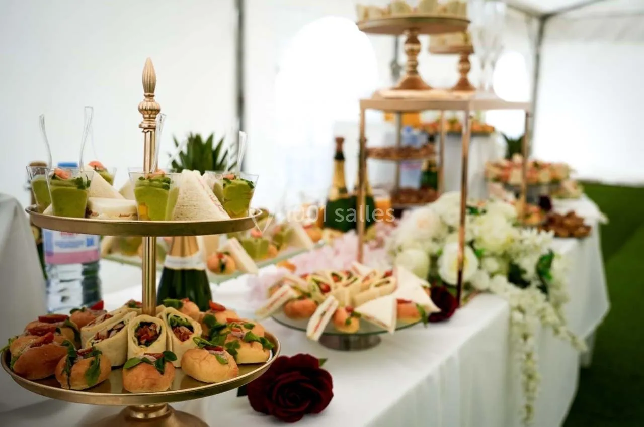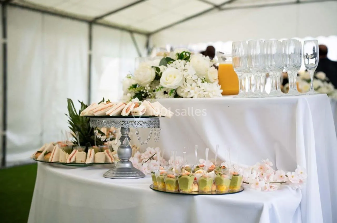 En plus de la location de salle, nous vous proposons un service traiteur raffiné, incluant :