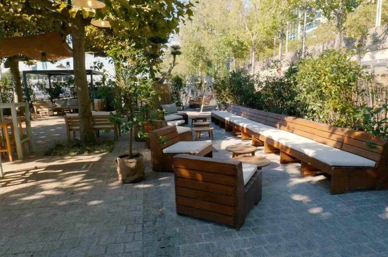 Juste au-dessus, le **Jardin Suspendu** vous invite à découvrir un Rooftop de 150m² avec une vue panoramique sur la Seine, encadré d'oliviers centenaires. Cet espace en plein air est parfait pour savourer le soleil parisien🌞 ou organiser une soirée inoubliable sous les étoiles⭐