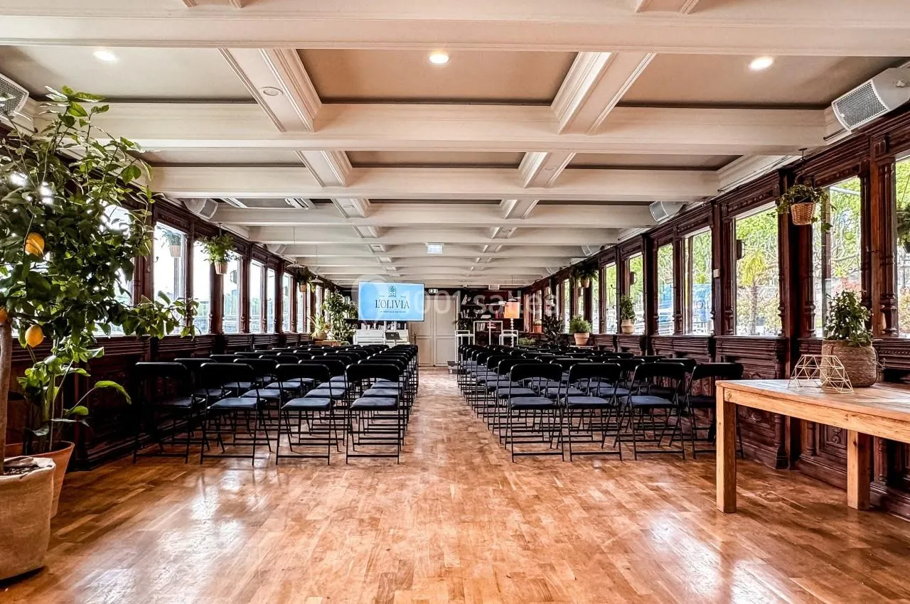 L'Olivia offre la possibilité de privatiser trois niveaux distincts, incluant des espaces comme le Jardin d'Hiver, le Grand Salon, et la Terrasse à Quai.