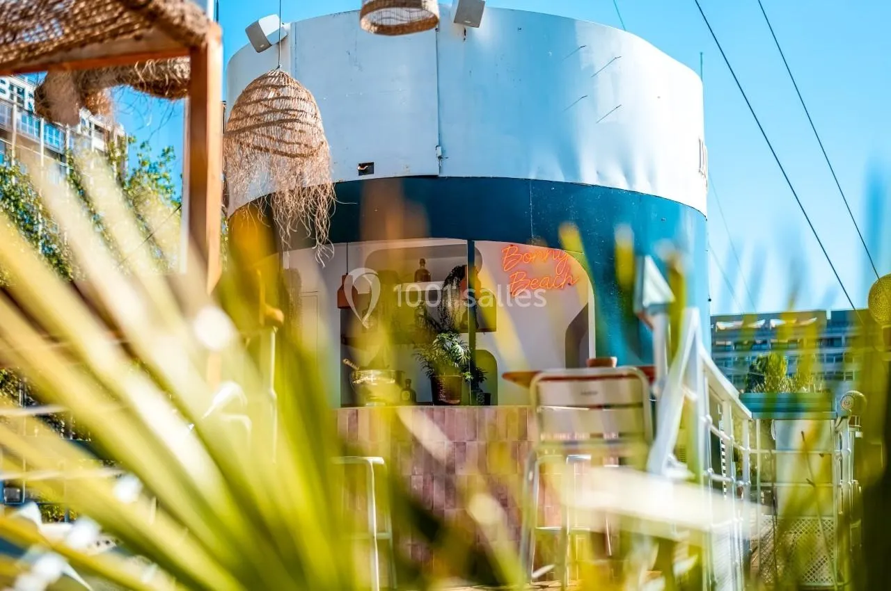 En complément du Grand Salon, le **Bonny Beach** est une terrasse privative de 70m² qui transporte vos invités entre les Cyclades et Bali. C'est un coin de paradis où détente sur un lit balinais et apéritifs au coucher du soleil célèbrent la douceur de vivre parisienne.