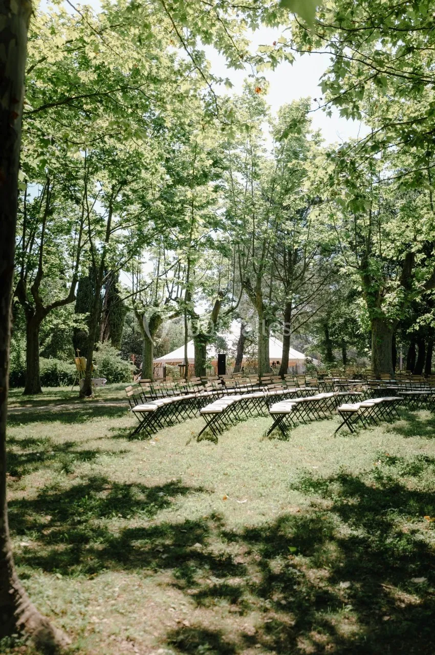 - parc ombragé sous des platanes centenaires pour cocktail ou diner en plein air