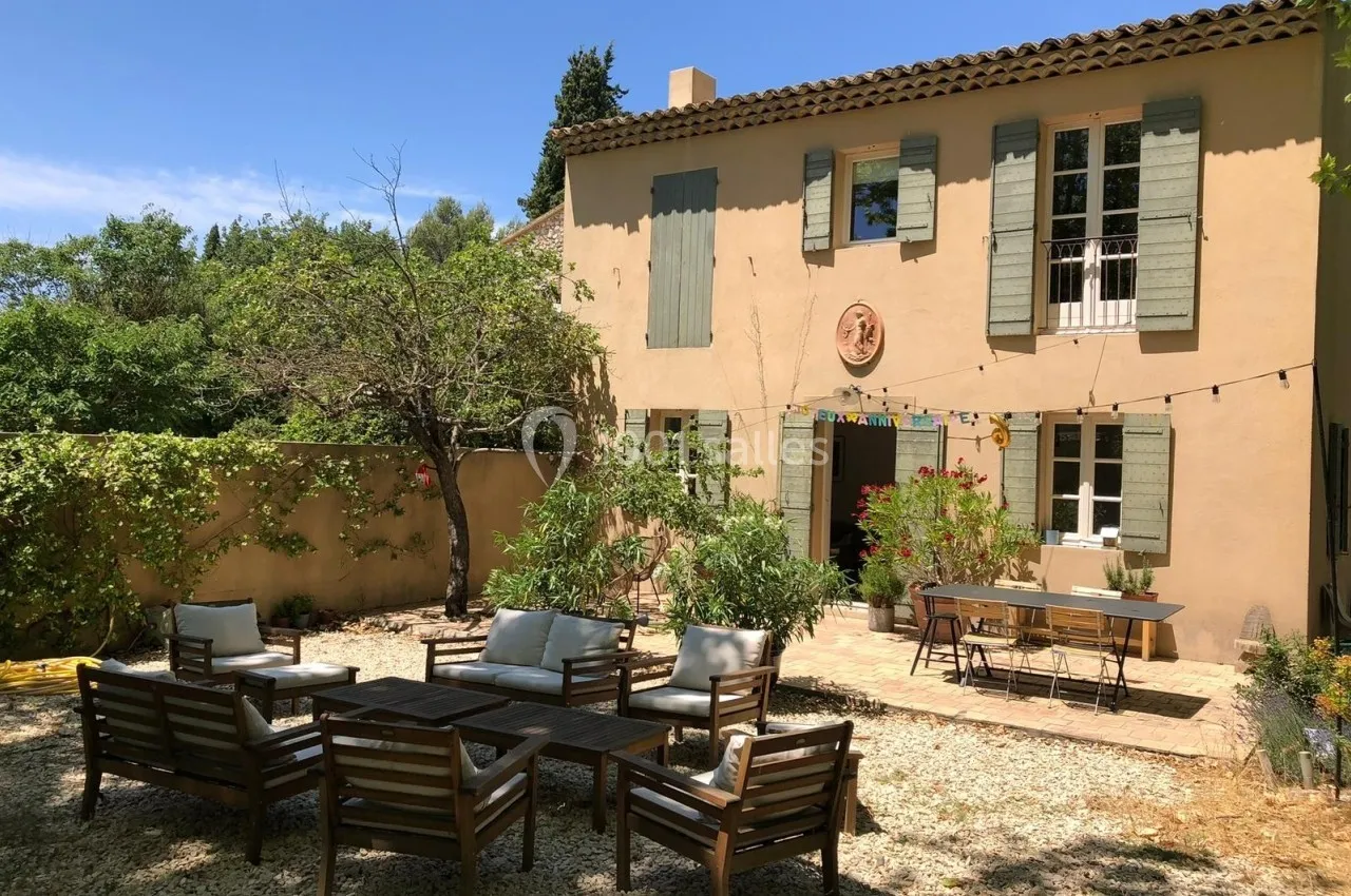 Le domaine peut accueillir jusqu’à 40 personnes réparties dans plusieurs mais...ons et studios de charme, entre bâtisses provençales, jardins et vignes. Les hôtes disposent d’espaces variés pour vivre une expérience immersive : cave de dégustation authentique, potager et verger bio avec serre, cour intérieure ombragée pouvant accueillir des repas, parc privé propice aux activités bien-être, salle de réception chaleureuse pour les saisons fraîches, grande tente de réception de 250 m² face aux vignes et lavandes pour événements, ainsi que vastes extérieurs sous les platanes pour cocktails et rassemblements. L’ensemble forme un lieu paisible, élégant et fonctionnel, parfaitement adapté aux retraites yoga, séminaires, séjours bien-être ou événements privés en pleine nature provençale.