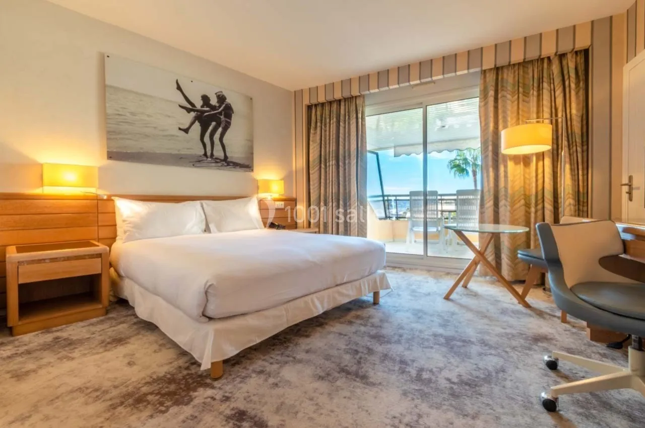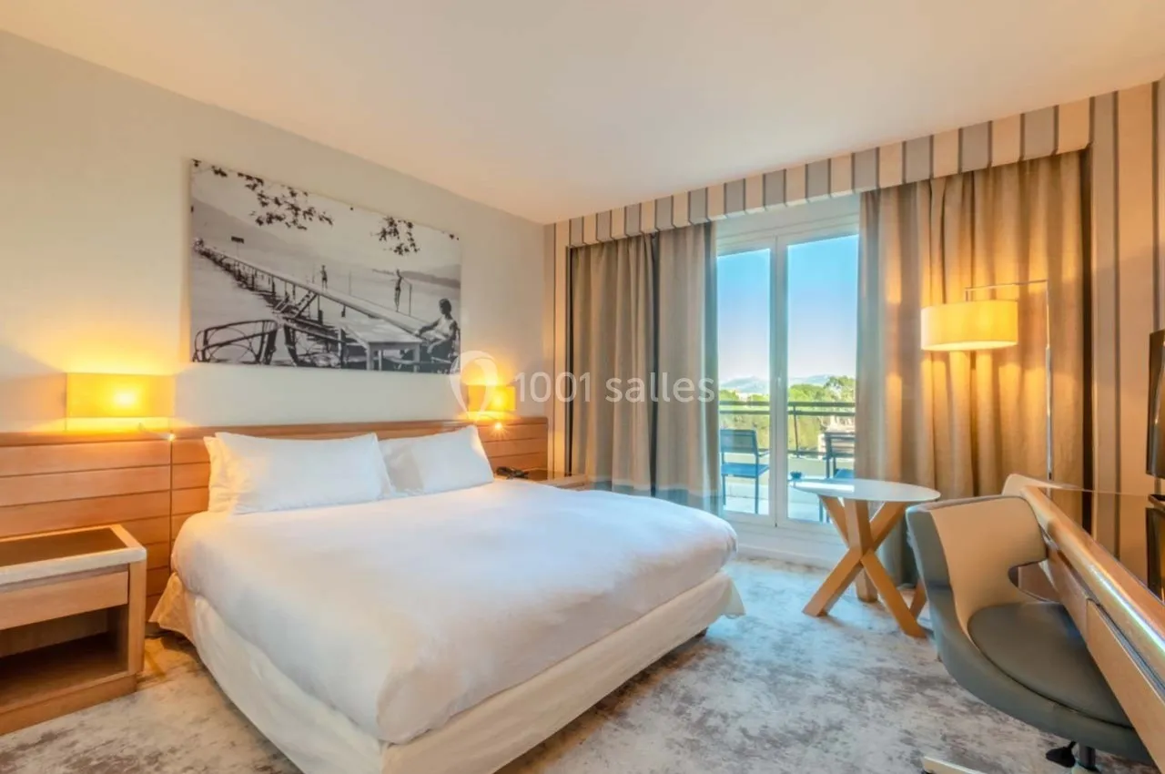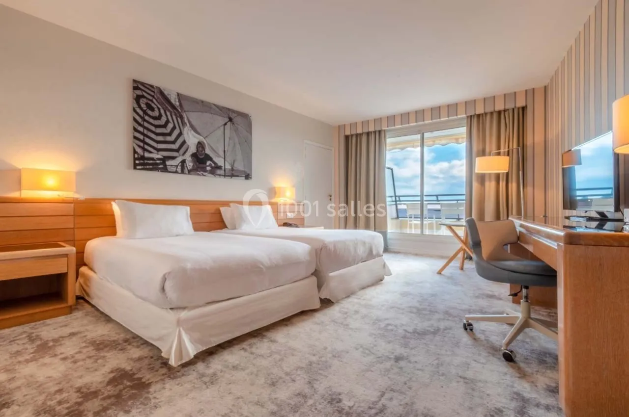 Oui, l'hôtel dispose de 124 chambres spacieuses avec une moyenne de 30m², dont 114 avec terrasses privatives. Certaines offrent une vue sur la mer ou le jardin, parfaites pour un séjour professionnel confortable.