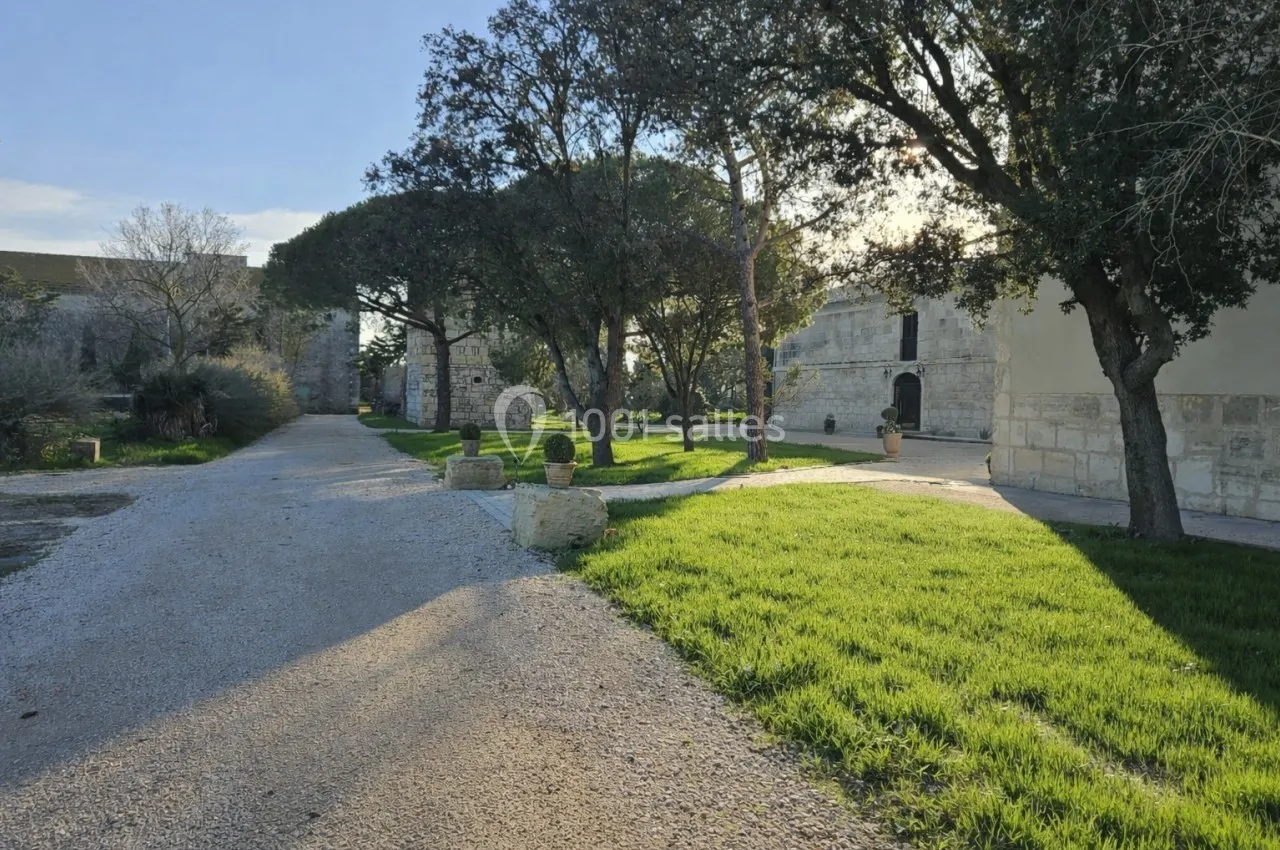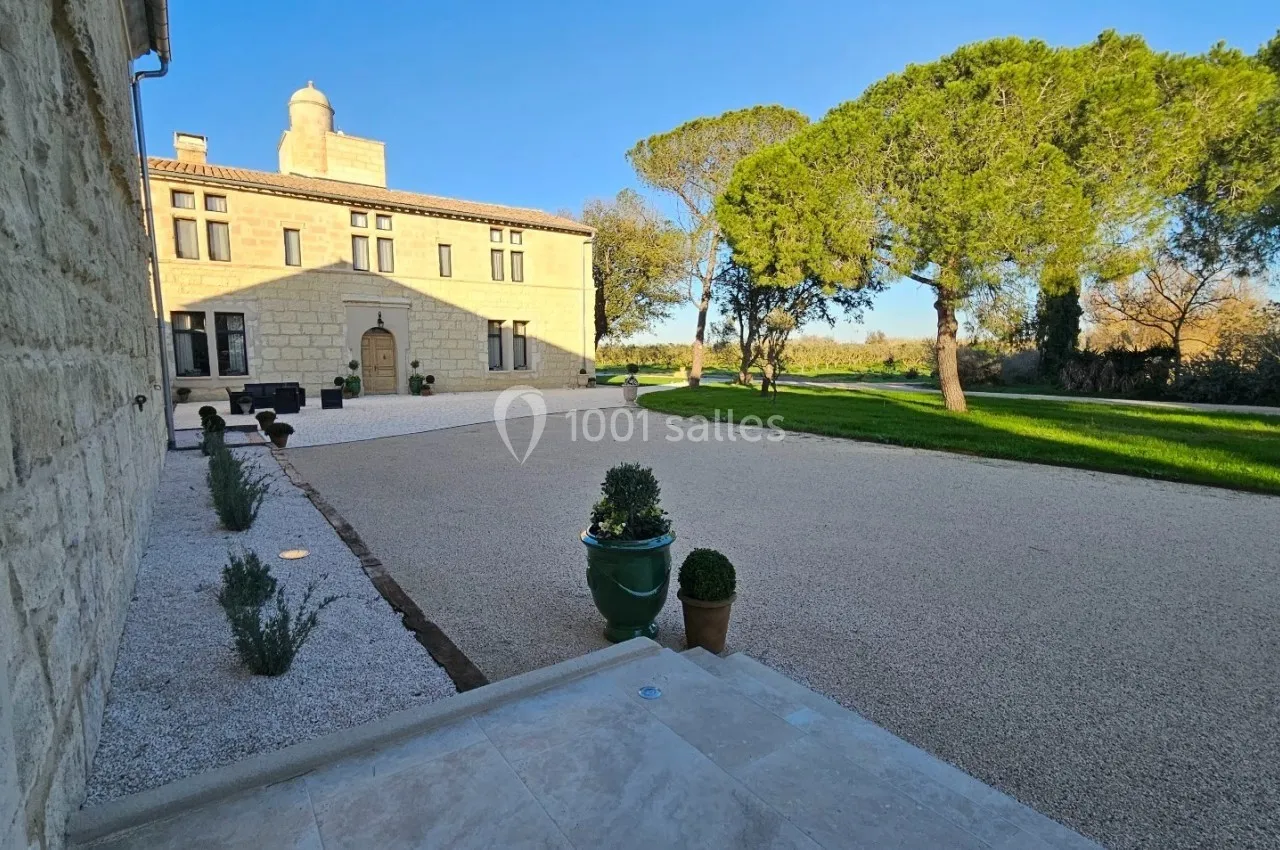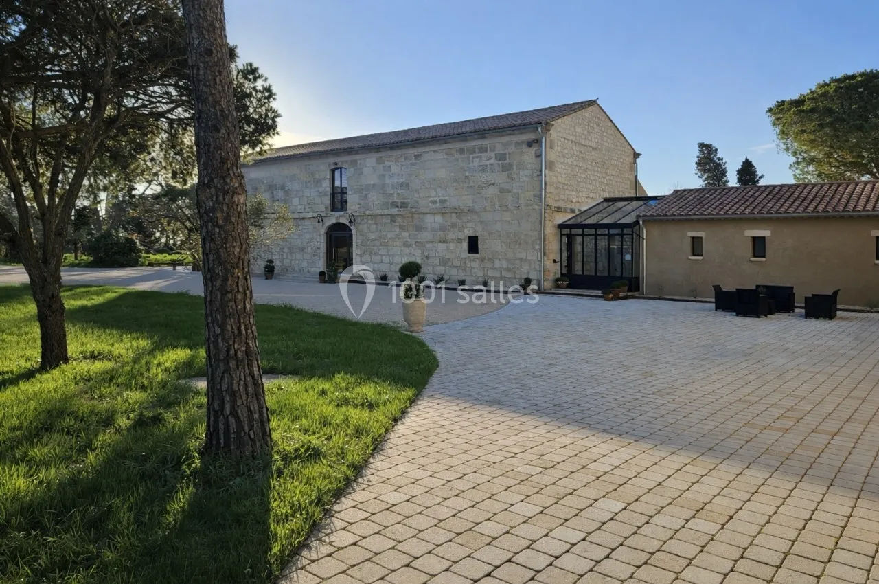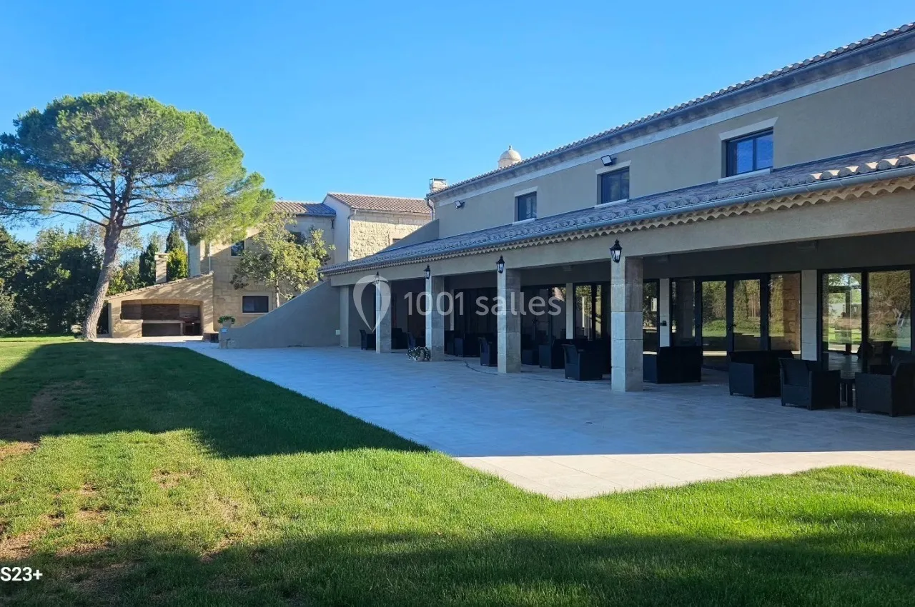 Le Mas de la Grande Porcelette dispose de deux grandes terrasses extérieures. La première, d’environ 250 m², est en partie couverte et permet d’accueillir cocktails, pauses ou dîners en extérieur tout en bénéficiant d’un espace abrité. La seconde, d’environ 180 m² en pavés, offre un cadre ouvert et élégant, idéal pour les temps forts d’un événement ou des moments de convivialité en plein air. Ces espaces prolongent naturellement les salles de réception et permettent d’alterner intérieur et extérieur selon la configuration souhaitée.